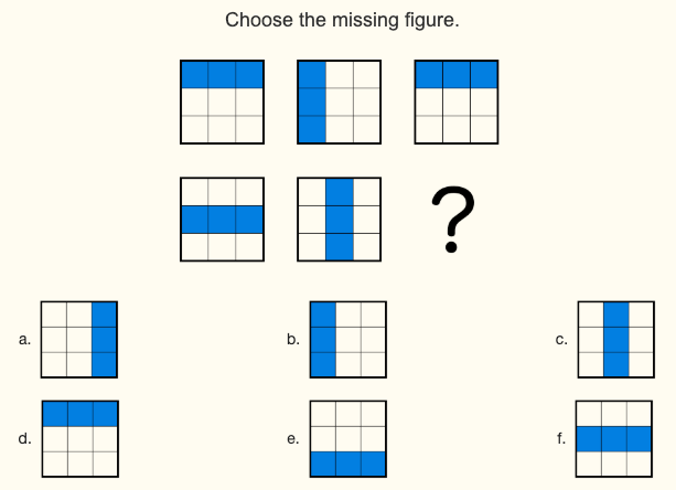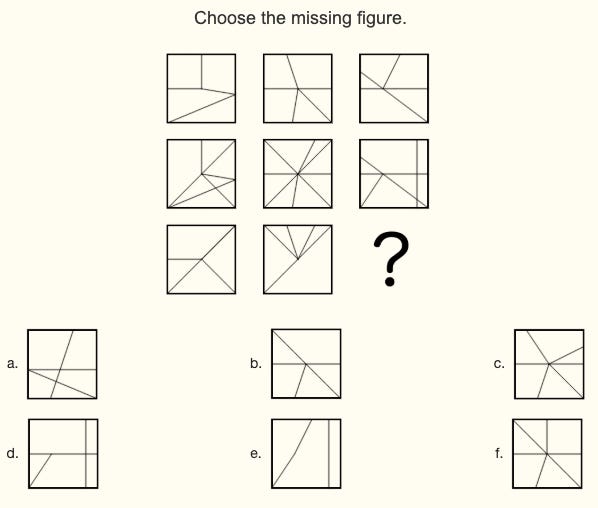 At first I felt like I was doing well. Slowly the questions got harder and the patterns more intricate, so they took more time for me to solve. But I hung in there and felt confident in most of my answers until I got to this:
